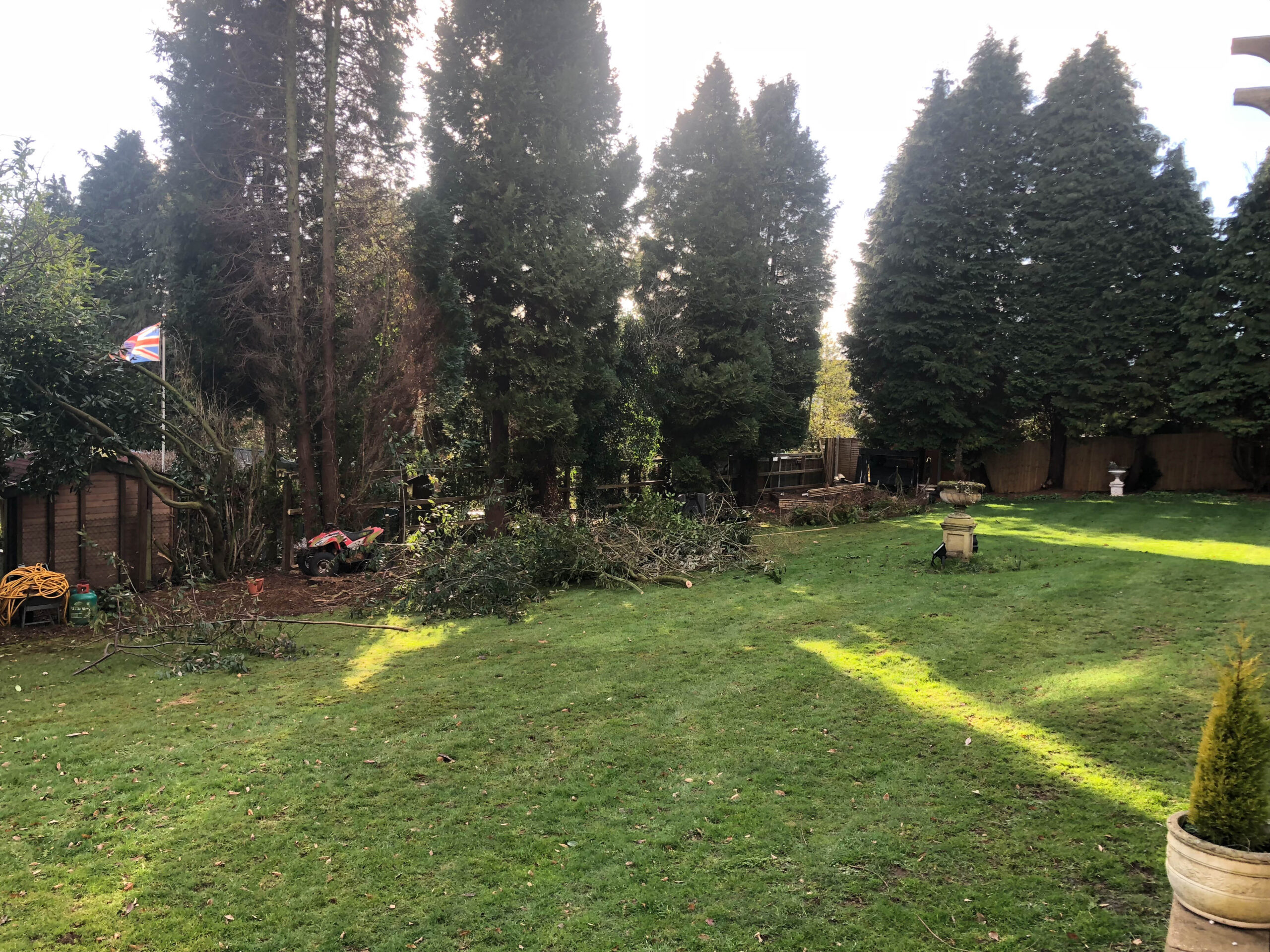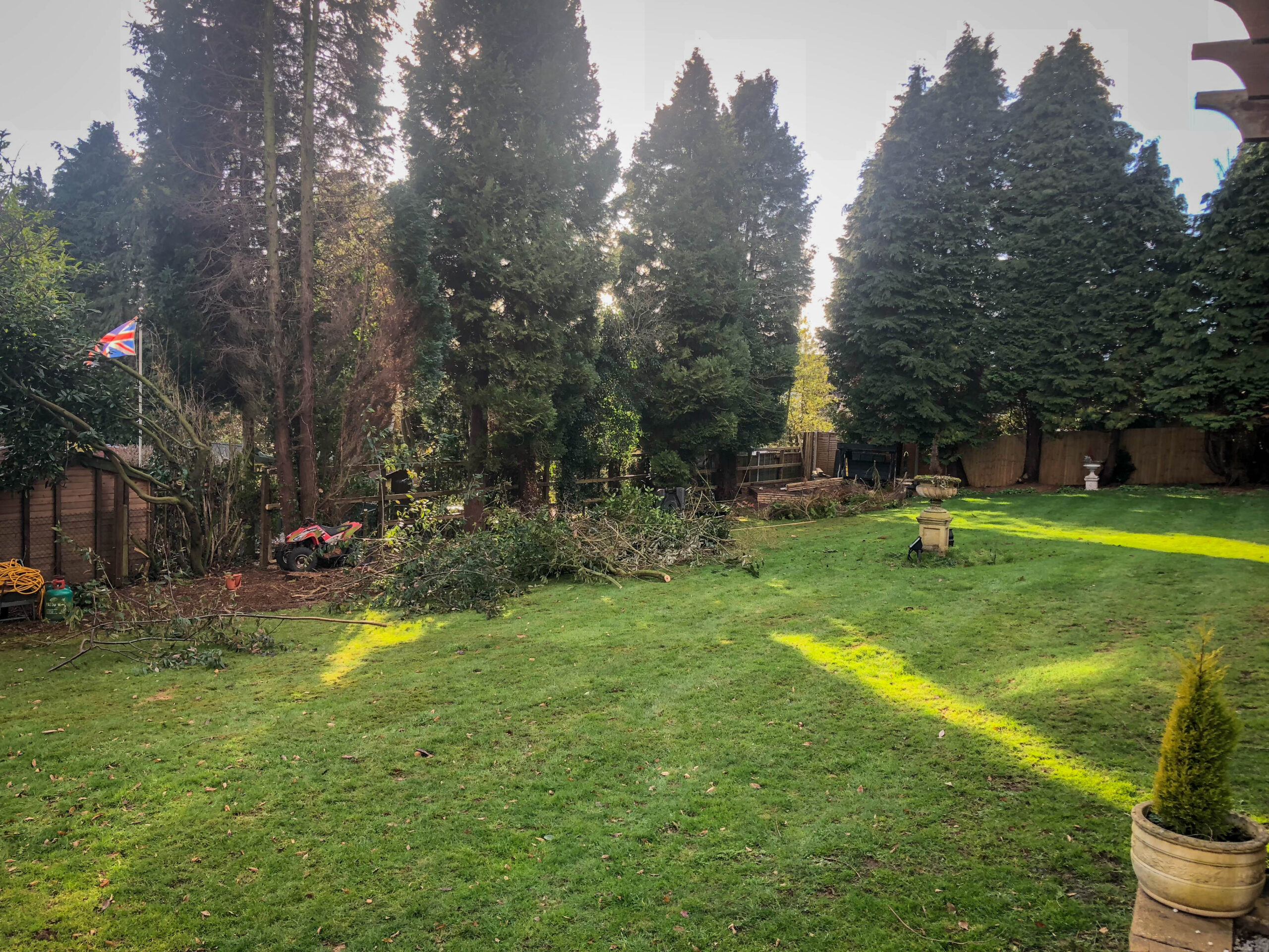 Our team began with a thorough inspection of the site, identifying several overgrown trees and shrubs that were preventing effective use of the garden. These were carefully removed to open up the space and allow for accurate ground assessment. With the vegetation cleared, we prepared the working area and established a clear plan to reshape the naturally sloping garden into a more practical, usable layout.