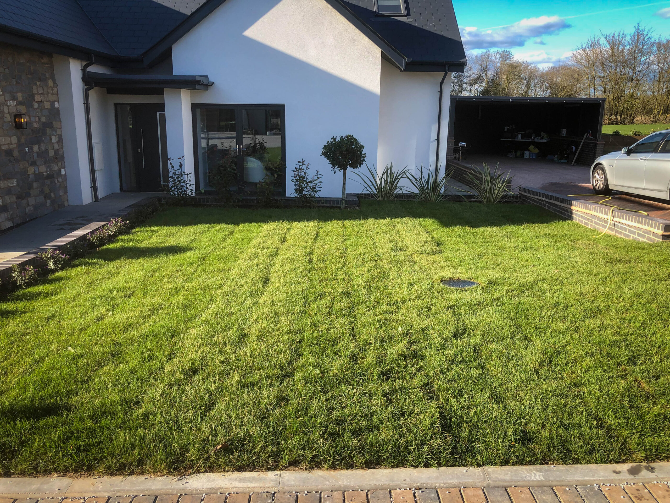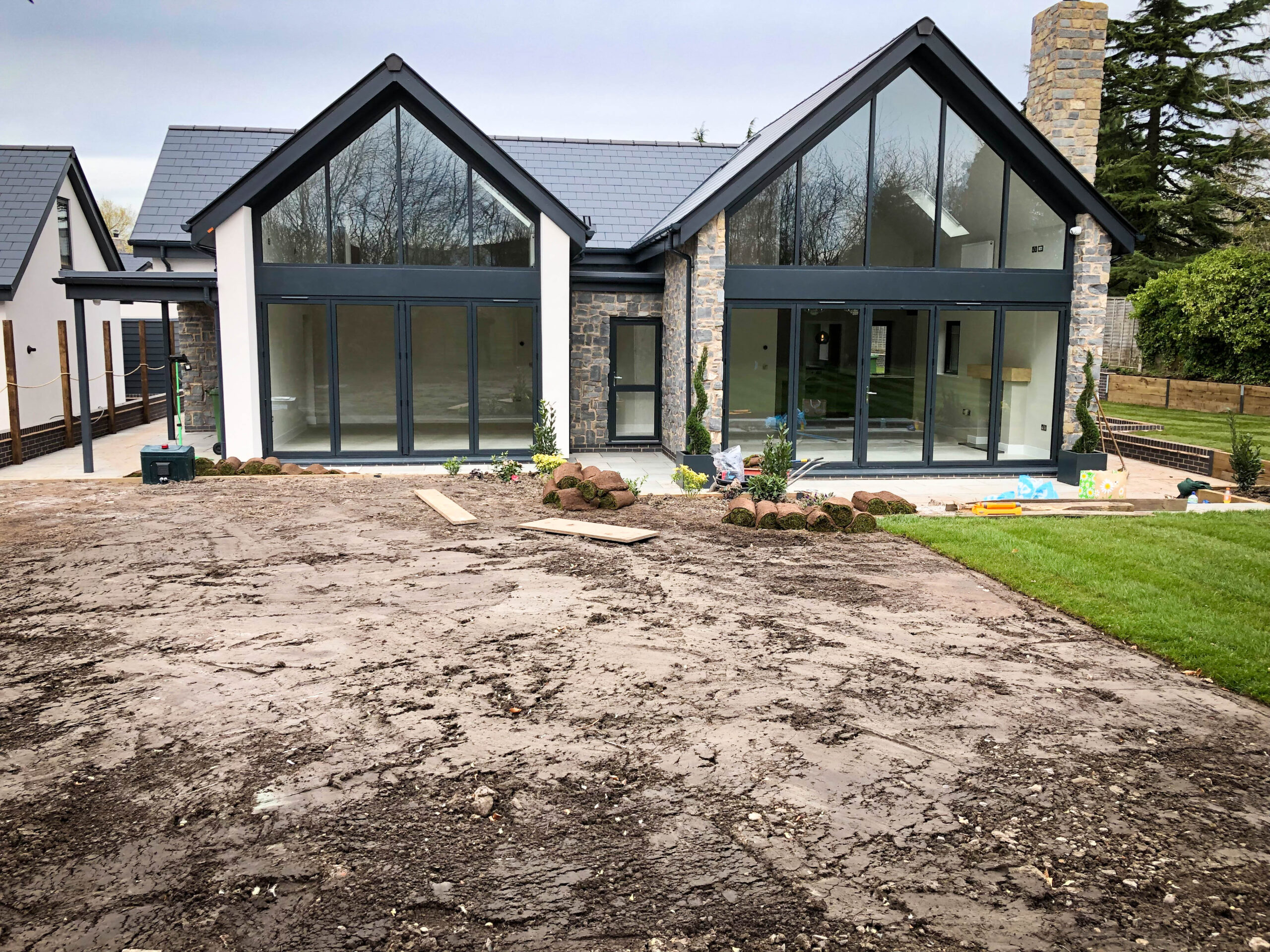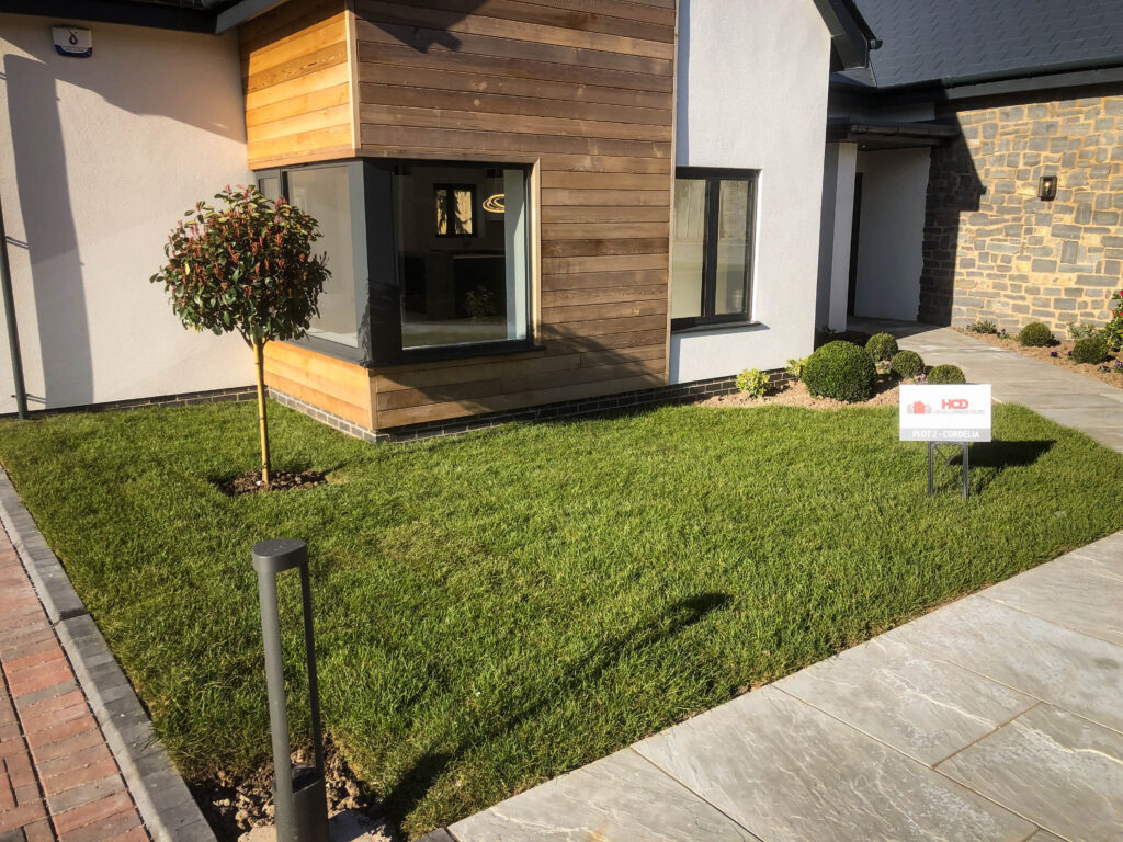 From a waterlogged contruction zone to a professionally finished garden with stunning new lawn ready for the new home owners.